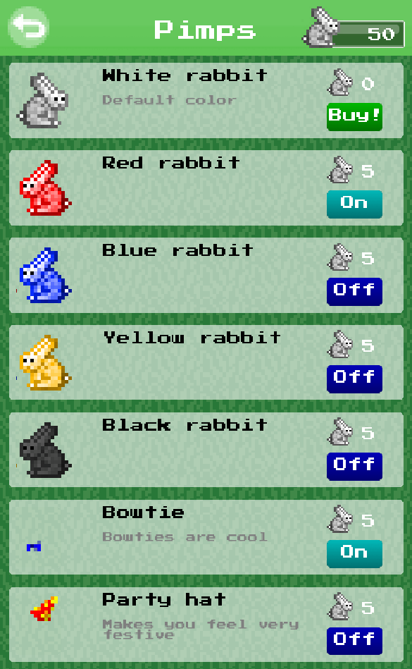 Exploding bunnies spices up this concept over the original one by including several gameplay extras: different types of bombs, with different dodging strategy (watch out for those pesky underground mines!), and little rabbits to rescue, which you can exchange for power ups and lovely ornamental accessories.